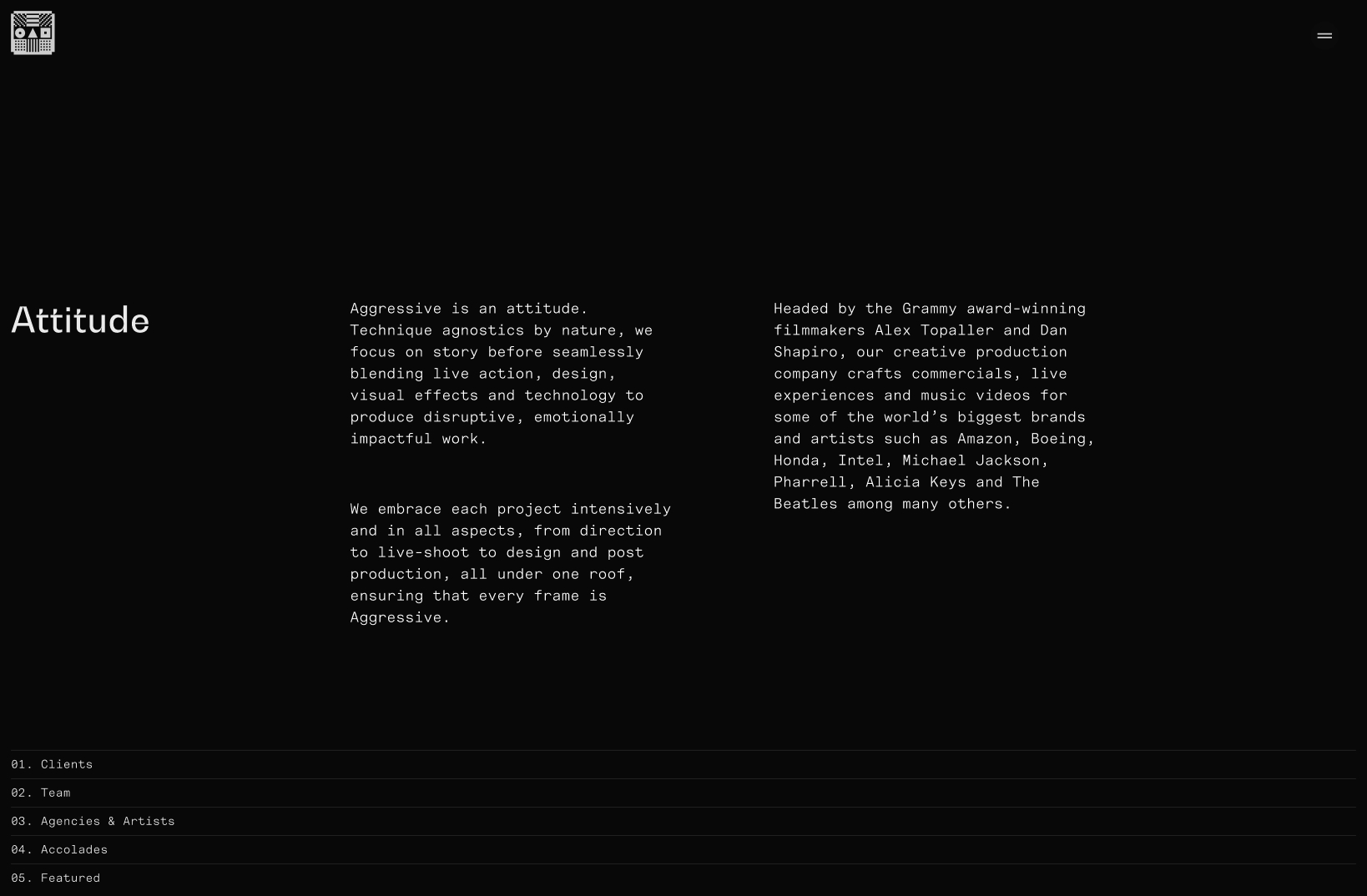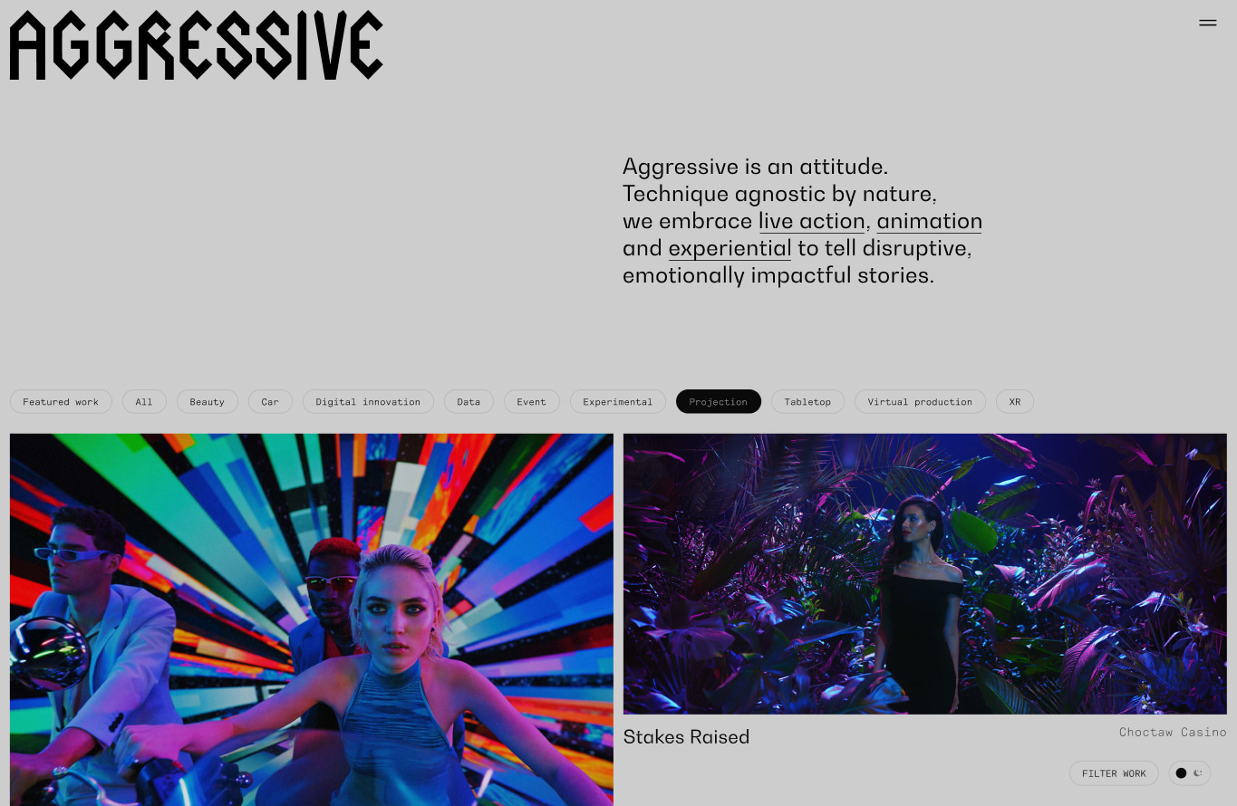 Interface invites visitors to explore more advanced functionality, allowing them to filter the work and better understand the three main areas of production: “Live Action,” “Design & Animation,” and “Experiential.” To ensure the best viewing experience across different contexts, users can switch between light and dark modes at any time.